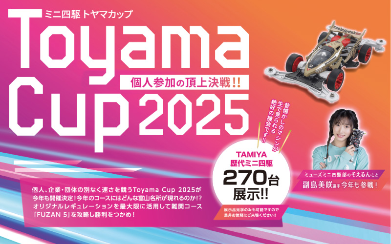 1日(土)午前は出場選手が難関コースFUZAN5に挑戦するミニ四駆「Toyama Cup 2025」を開催! 技術を活かして製作された難関コースFUZAN5には富山の名所を模したセクションが多数!全国から集まったミニ四駆レーサーが難所をどのように攻略するのか!? 見ごたえたっぷりのミニ四駆大会です!ぜひご観戦ください!