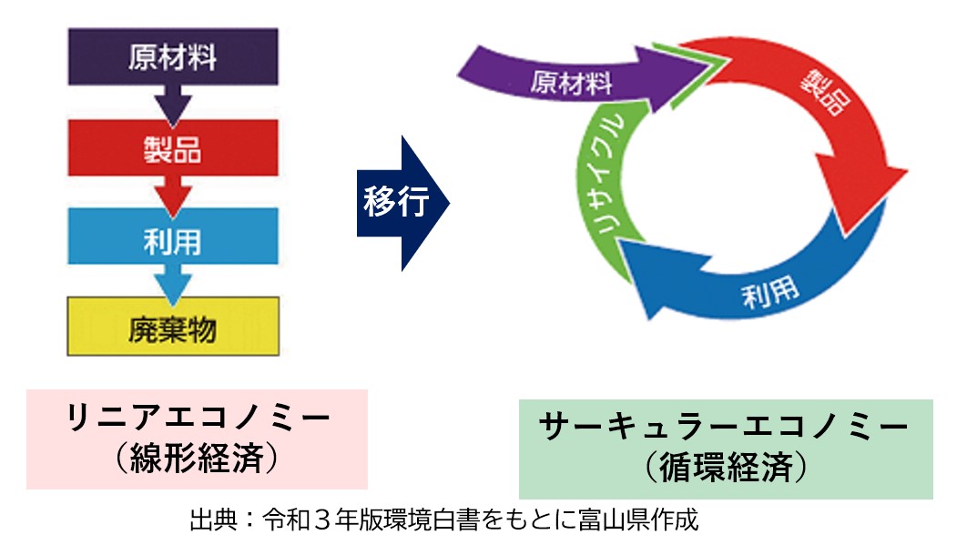 従来の大量生産・大量消費型経済は、資源や環境への負荷が大きいことから、サーキュラーエコノミーへの移行が求められています。