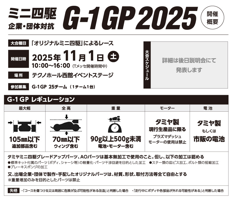 1日(土)午後は企業・団体対抗ミニ四駆「G-1 GP 2025」を開催!