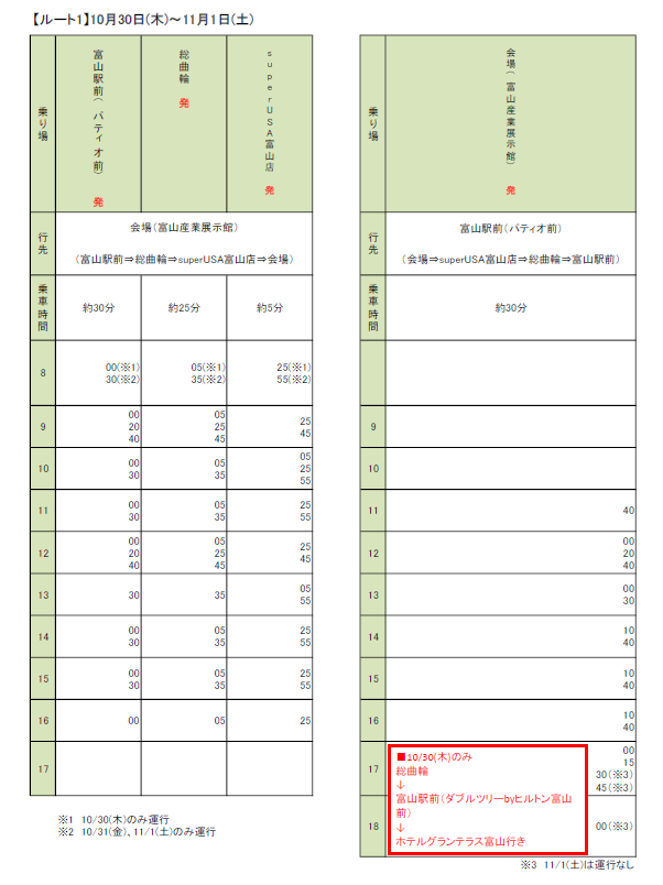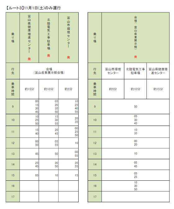 T-Messeでは下記のとおり無料シャトルバスを運行いたします。